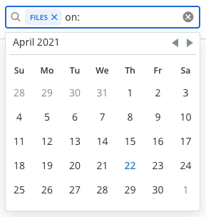 Use on: to find messages files posted on a specific date. Use the date picker to select a date, or type it in YYYY-MM-DD format.