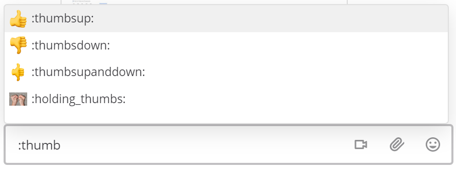 Alternatively, open the emoji autocomplete by typing : followed by at least two characters of the word describing the emoji. Descriptions include skin tone details for people-based emojis, where supported.