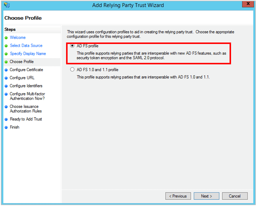 • Identity Provider Issuer URL: Relying party trust identifier from ADFS you specified earlier.