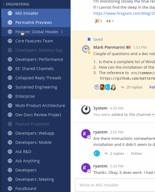 Conversations in Mattermost are crucial to company productivity and success. Keeping conversations organized in the sidebar creates an efficient workplace. Using a web browser or the desktop app, you can customize your own channel sidebar based on how you prefer to use Mattermost. Customizations you make are only visible to you, are visible when using the mobile app, and won’t affect what your teammates see in their sidebars.