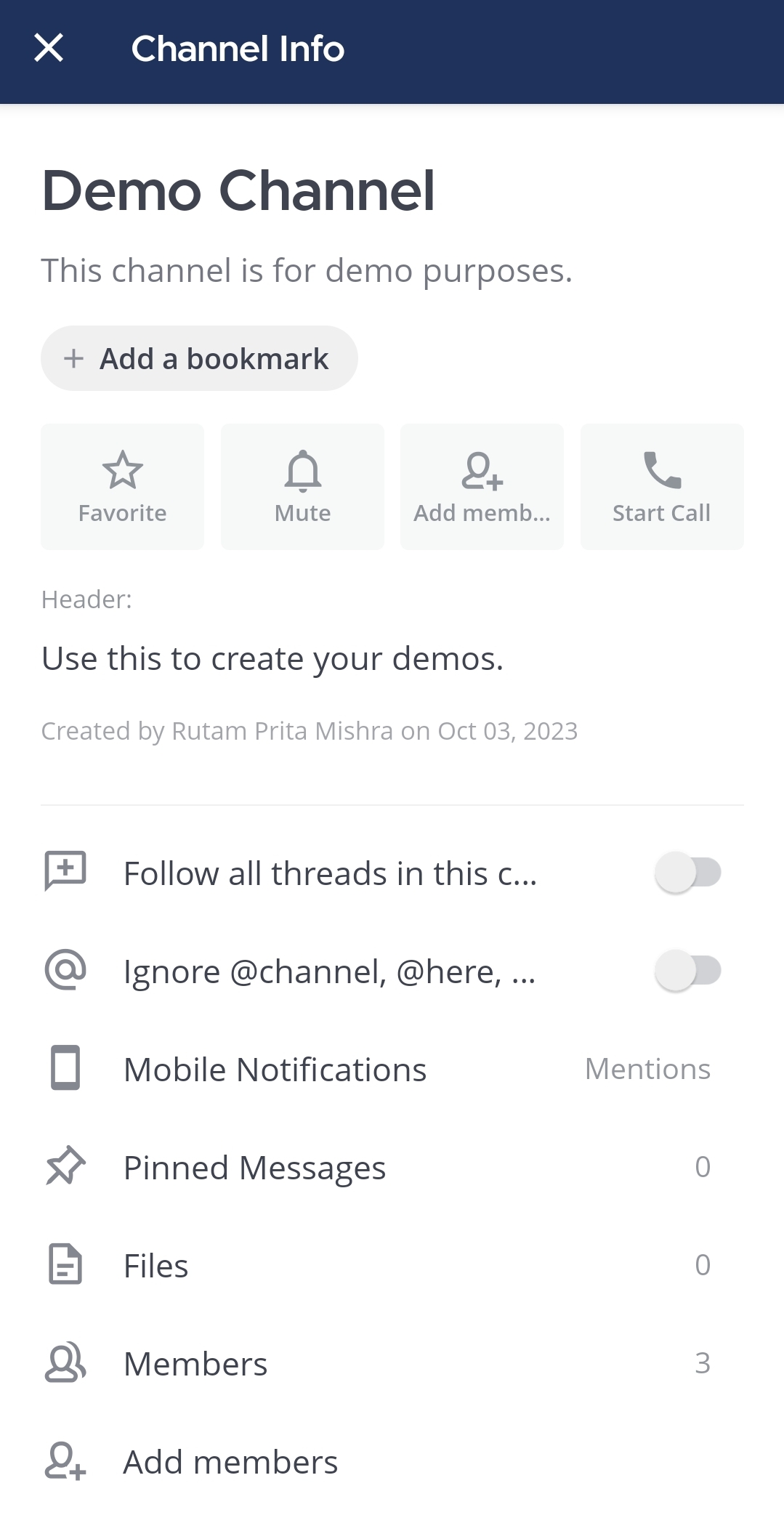 Tap on More options to access available options for the channel.